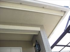 ボソボソになってしまっていた軒天部分を塗装していきます。 |