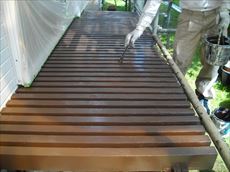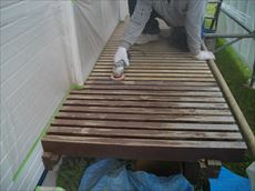 日焼けし、劣化していたウッドデッキに取りかかっていきます。 |