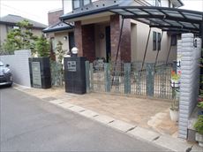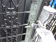 | 門扉の塗装を行っていきます。これまでの汚れを落としていきます。下地調整も手を抜きません。 |
