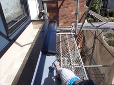 | 外壁につかないように、丁寧に刷毛で塗装していきます。 |