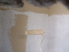 刷毛で際や細かい部分を、ローラーで広い面を塗装していきます。(色付けの1回目) |