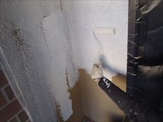 モルタル壁に多いパターンの剥がれをセメントで補修します。 |