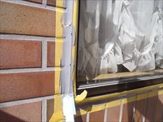 | 雨水の侵入を防ぐため、窓とサッシの間を丁寧に埋めていきます。 |