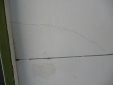 | 軒天の割れ。下地調整を行い、その上から塗装を行います。 | ベランダです。ベランダ内も隅々まで確認します。 | お客様ご了承のもと、屋根やベランダ内に入らせていただきます。 |