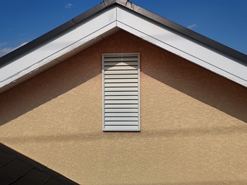 屋根、外壁、破風板、鼻隠し、軒天井、軒樋、竪樋、出窓天板屋根、水切り、鉄扉、キッチンシューター、妻換気、換気フード、外灯、エアコンスリムダクト |