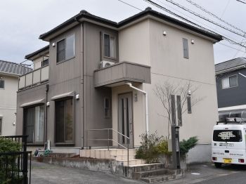 | 施工前の状態です。 まずは診断を行い、汚れの状態やひび割れといったお家の状態を確認します。 その上で、どんな工事が必要なのか、どんな塗料が適切なのかを判断します。 |