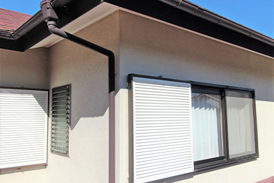 外壁・屋根・雨樋・破風板・鼻隠し・軒天井・雨戸・霧除け板金・換気フード・水切り・通気口(ガラリ)・外灯・分電盤土台交換 |
