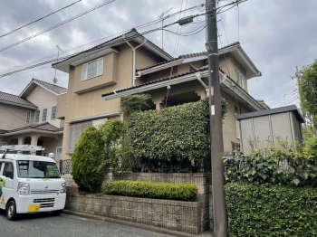 | 施工前の状態です。 まずは診断を行い、汚れの状態やひび割れといったお家の状態を確認します。 その上で、どんな工事が必要なのか、どんな塗料が適切なのかを判断します。 |