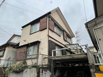 | 施工前の状態です。 まずは診断を行い、汚れの状態やひび割れといったお家の状態を確認します。 その上で、どんな工事が必要なのか、どんな塗料が適切なのかを判断します。 |