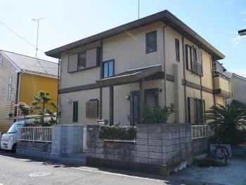 | 施工前の状態です。 まずは診断を行い、汚れの状態やひび割れといったお家の状態を確認します。 その上で、どんな工事が必要なのか、どんな塗料が適切なのかを判断します。 |