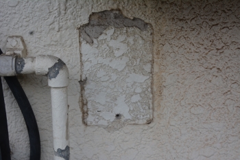 | 施工前の状態です。 まずは診断を行い、汚れの状態やひび割れといったお家の状態を確認します。 その上で、どんな工事が必要なのか、どんな塗料が適切なのかを判断します。 |
