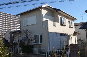 | 施工前の状態です。 まずは診断を行い、汚れの状態やひび割れといったお家の状態を確認します。 その上で、どんな工事が必要なのか、どんな塗料が適切なのかを判断します。 |