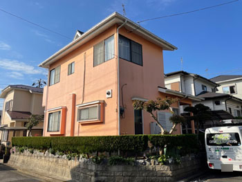 | 施工前の状態です。 まずは診断を行い、汚れの状態やひび割れといったお家の状態を確認します。 その上で、どんな工事が必要なのか、どんな塗料が適切なのかを判断します。 |