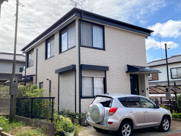 | 施工前の状態です。 まずは診断を行い、汚れの状態やひび割れといったお家の状態を確認します。 その上で、どんな工事が必要なのか、どんな塗料が適切なのかを判断します。 |