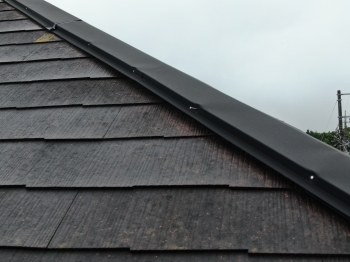 | 屋根は、建物の中で最も厳しい自然環境にさらされる箇所であるため、耐候性が非常に高く紫外線による塗膜の劣化抑制に威力を発揮する塗料で大切な家をしっかり守ります。 |