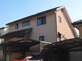 | 施工前の状態です。 まずは診断を行い、汚れの状態やひび割れといったお家の状態を確認します。 その上で、どんな工事が必要なのか、どんな塗料が適切なのかを判断します。 |
