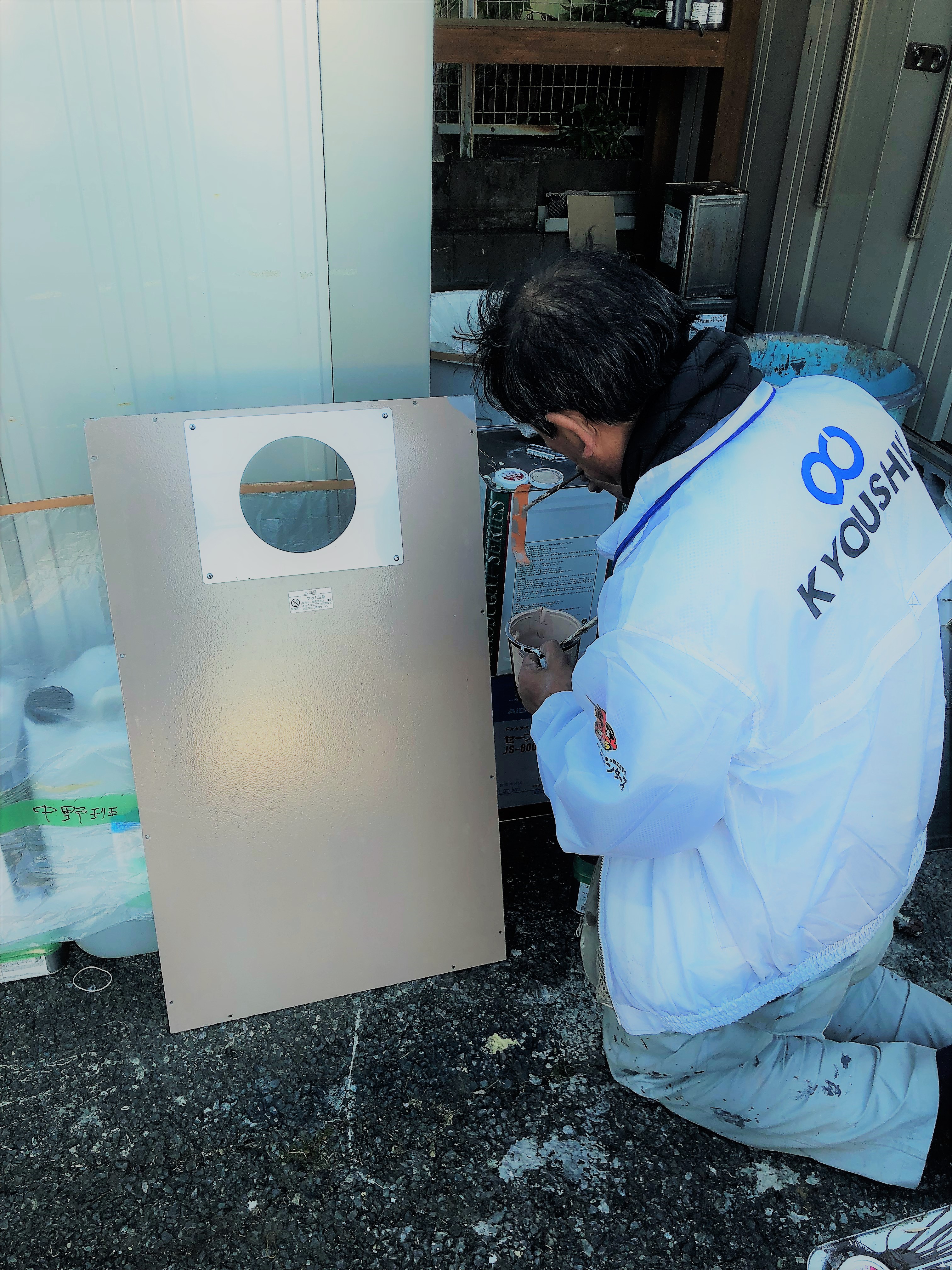 この後すぐに塗るのではなく、テープを張りその上に試し塗りをして色を合わせていきます。