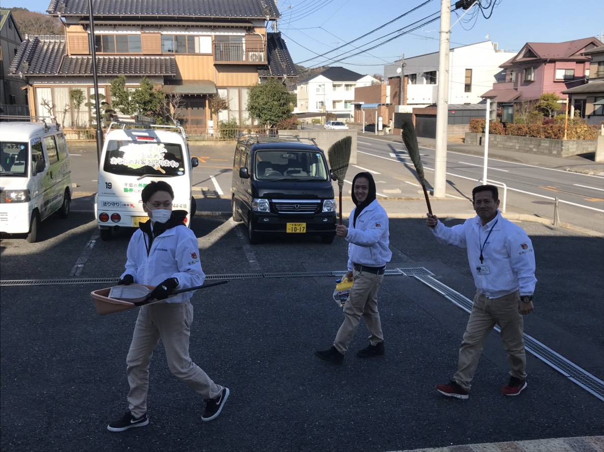 藤崎部長とジュンさんと私で外の掃除を行いました