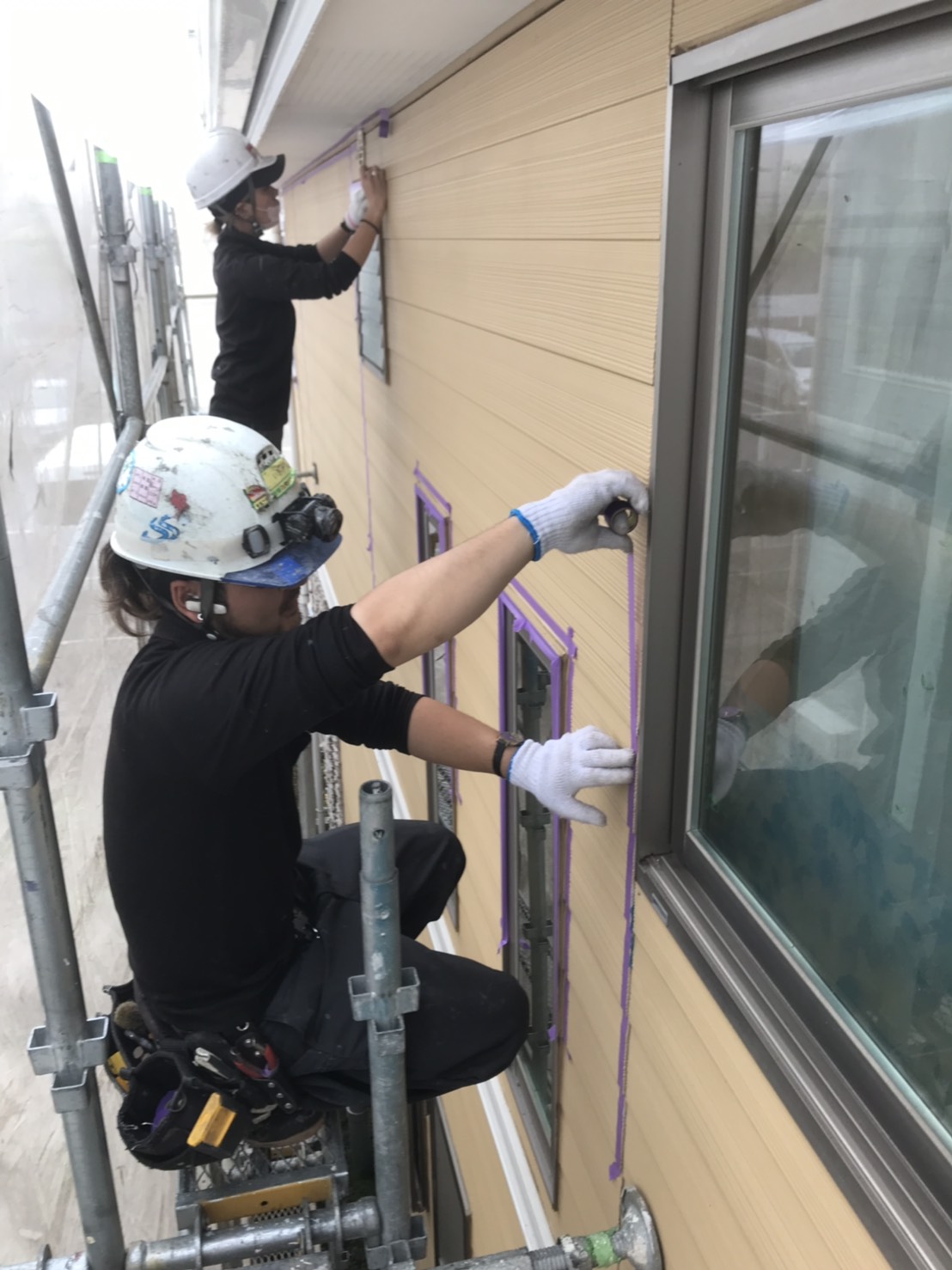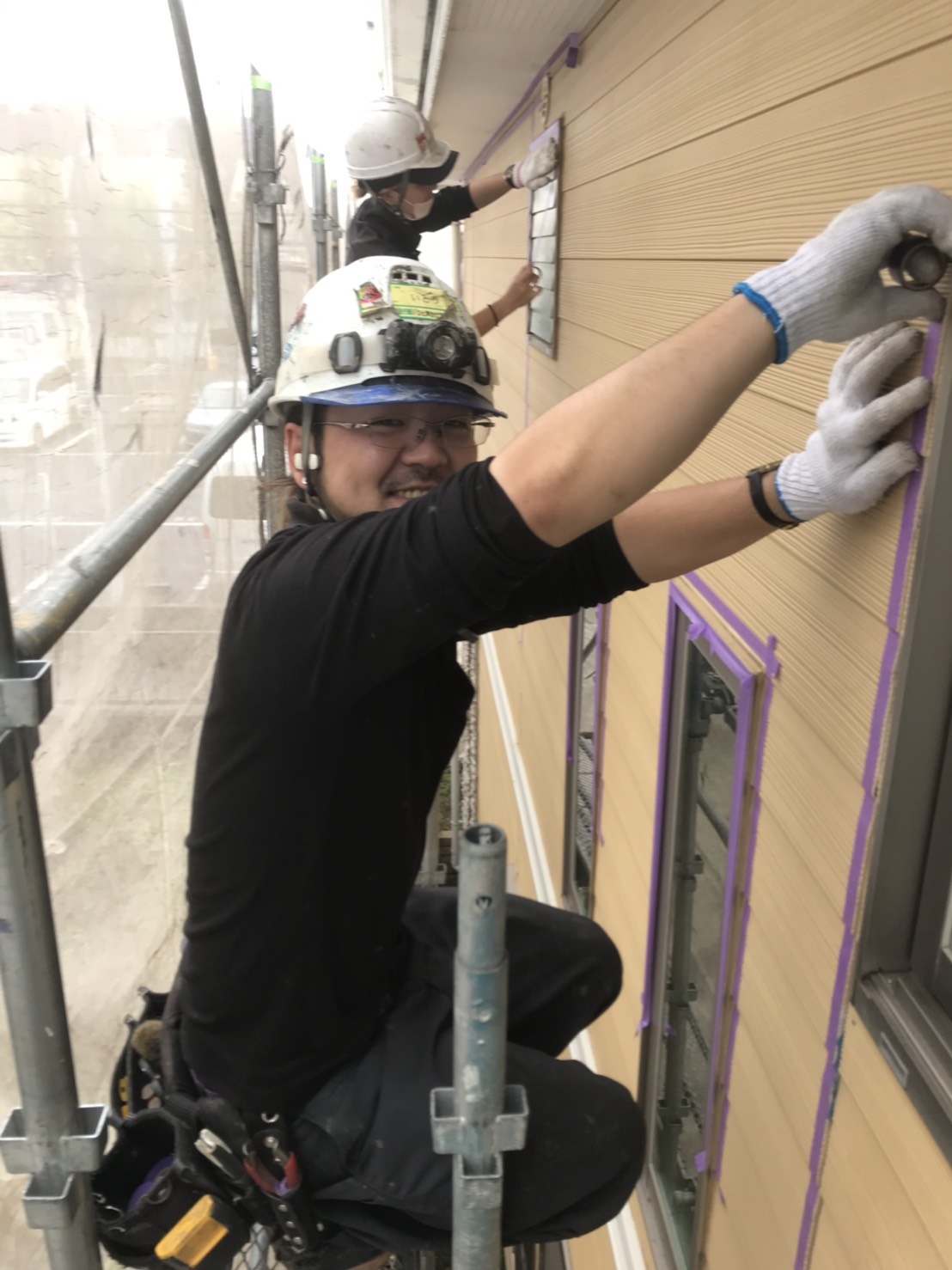 今日はそのシール工事の養生作業中の様子をお送りしました!