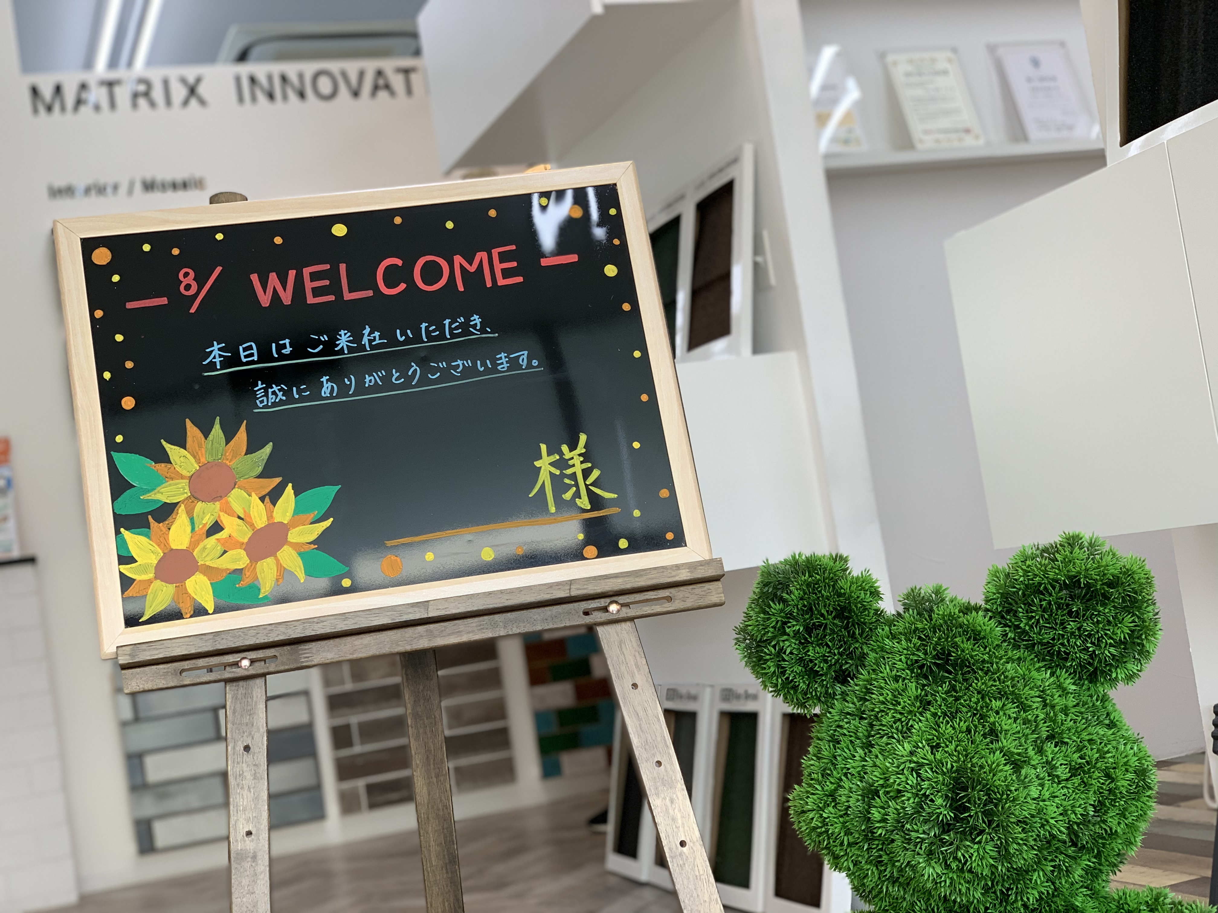 もう8月の中旬ですが、今月のウェルカムボードを紹介したいと思います!!