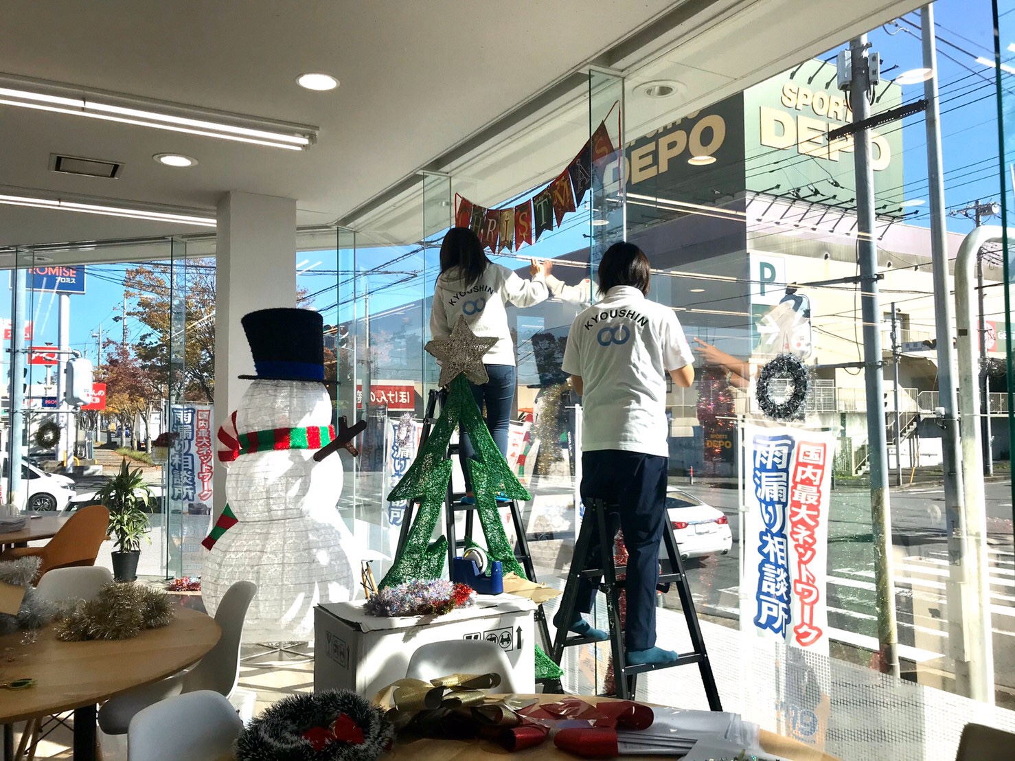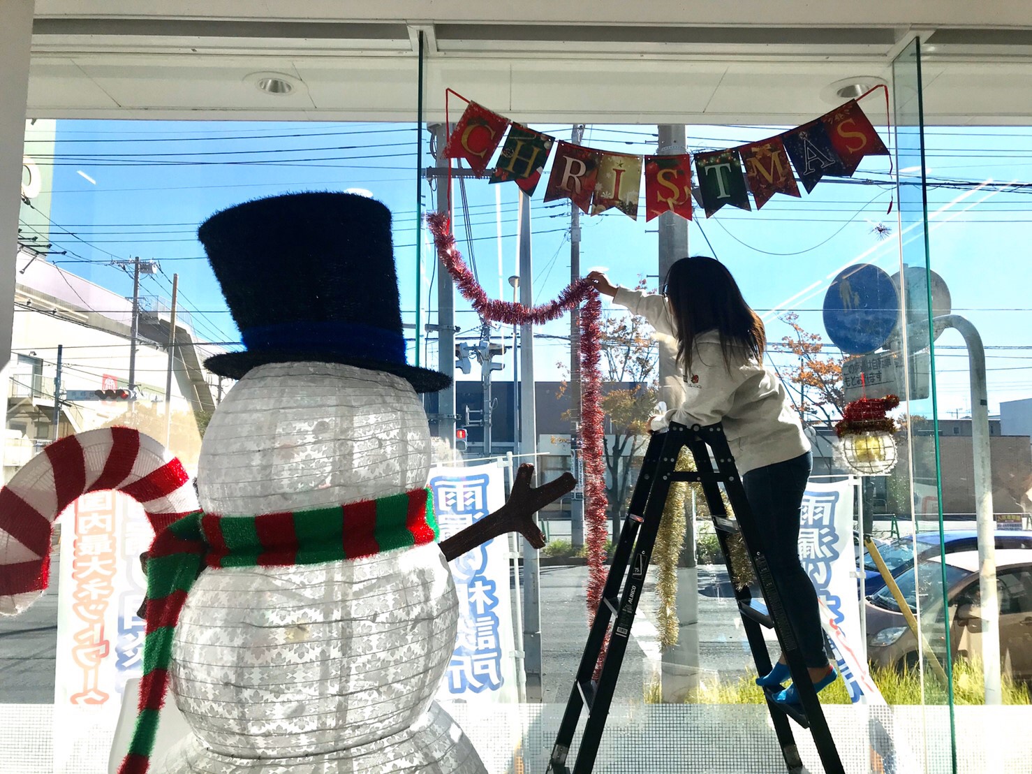 軽々やっているように見えて実は、びくびくしながら飾りつけをしているお姉さんも激写!!笑