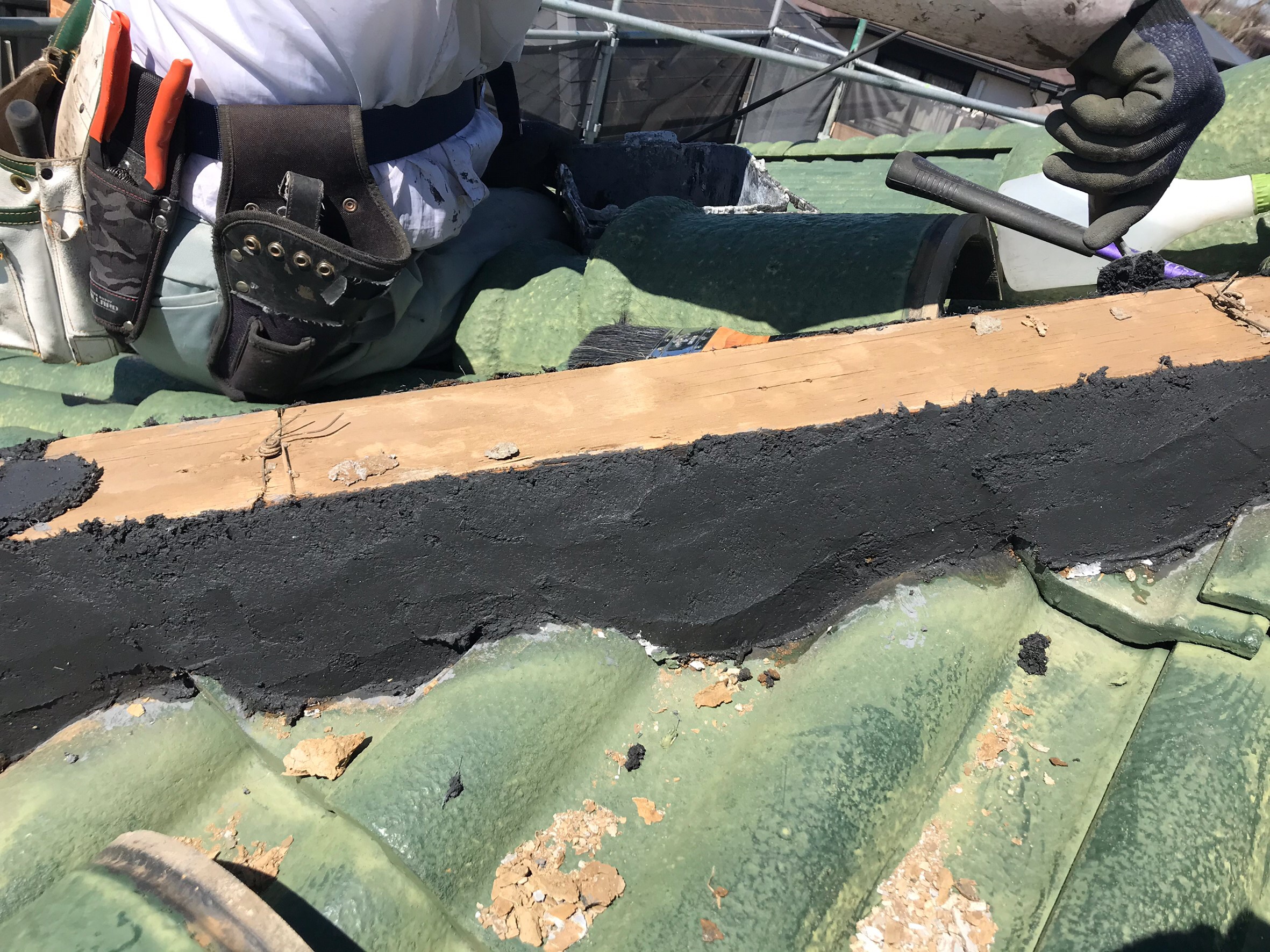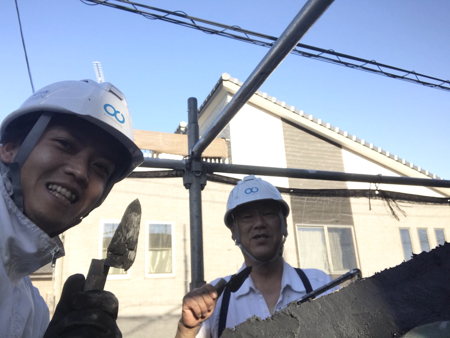 本日は、屋根の漆喰工事を施工する工事部の米さんとジュンをご紹介します。 最近暖かくなって来ましたね!春を感じら中屋根の上で2人仲良く漆喰工事を楽しそうに施工してます。