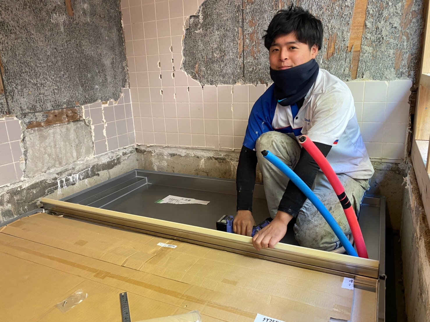 こちらで作業していたのは、タカラスタンダードさんの専属の施工職人さんがユニットを組立ます