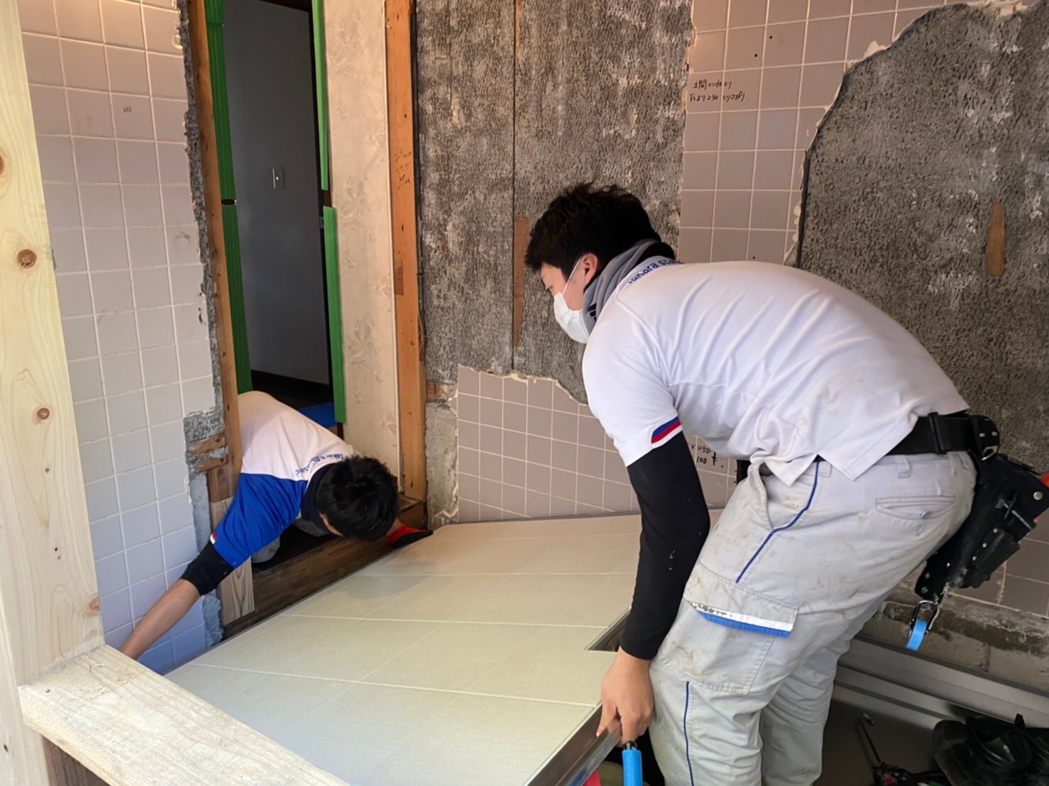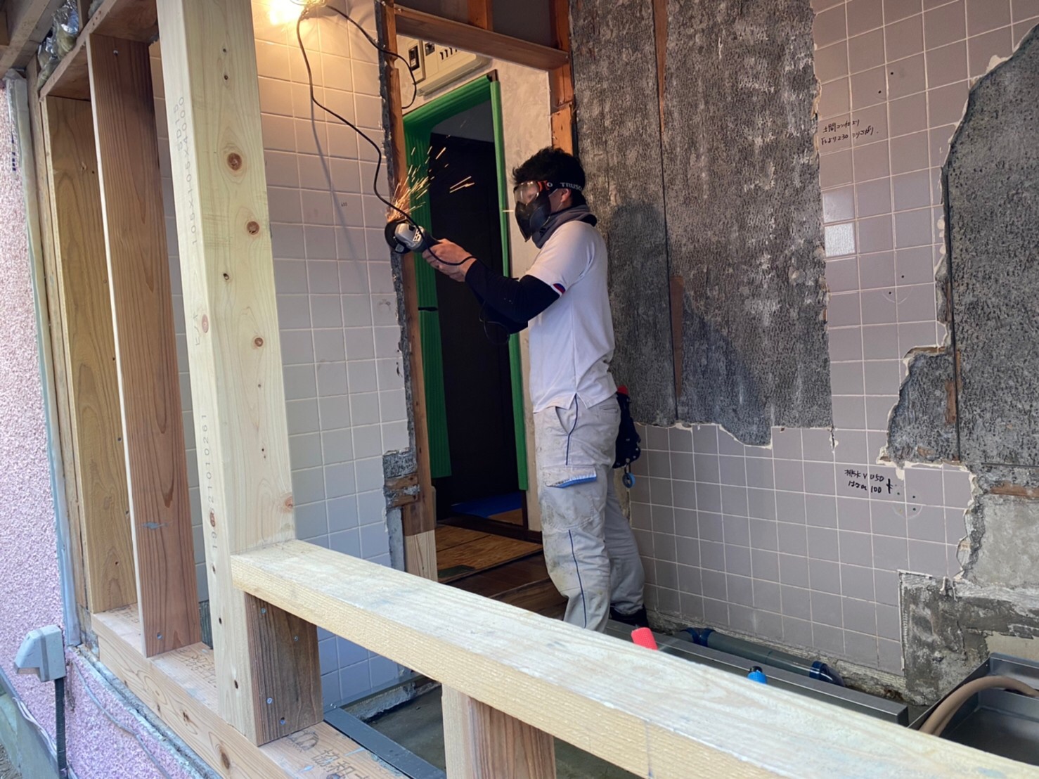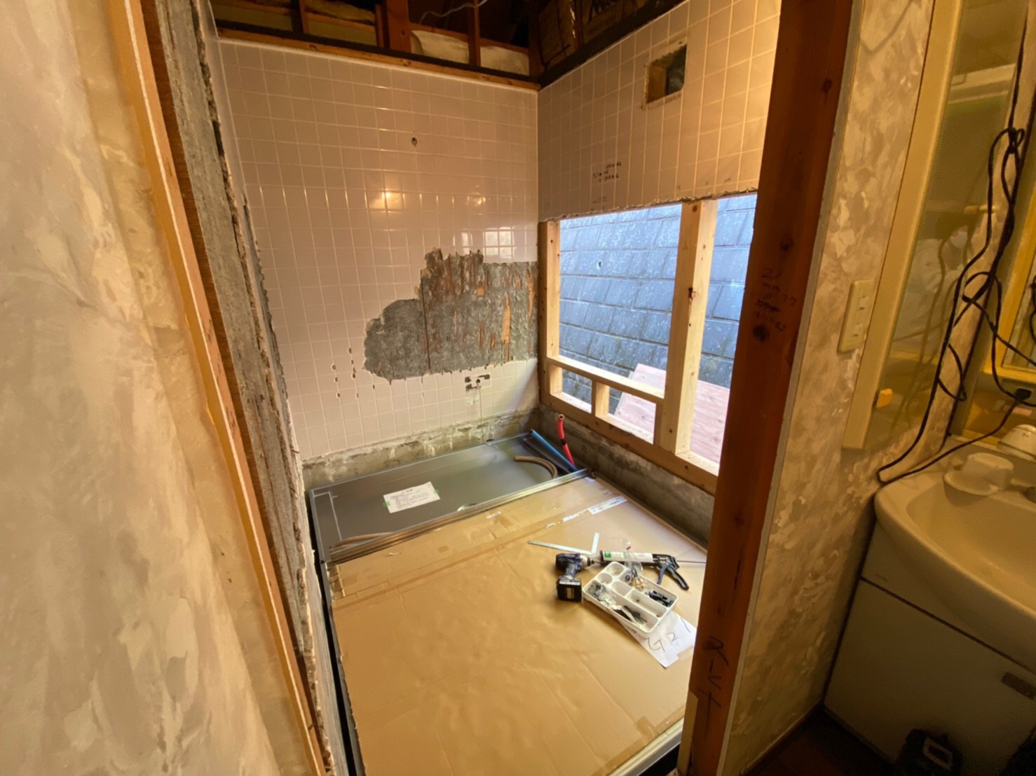 こちらの現場では、お風呂の工事中で本日は既存のお風呂の解体をし