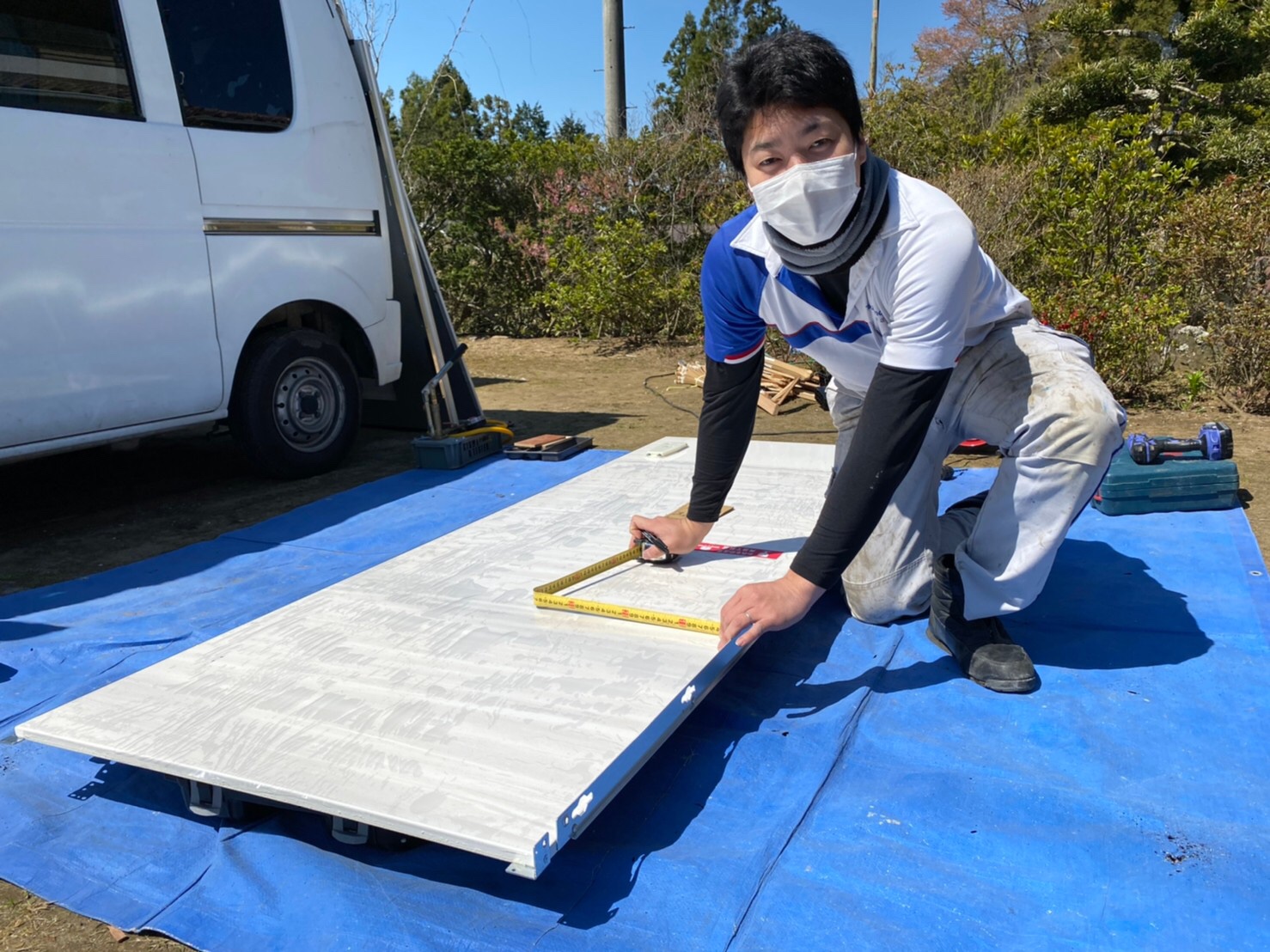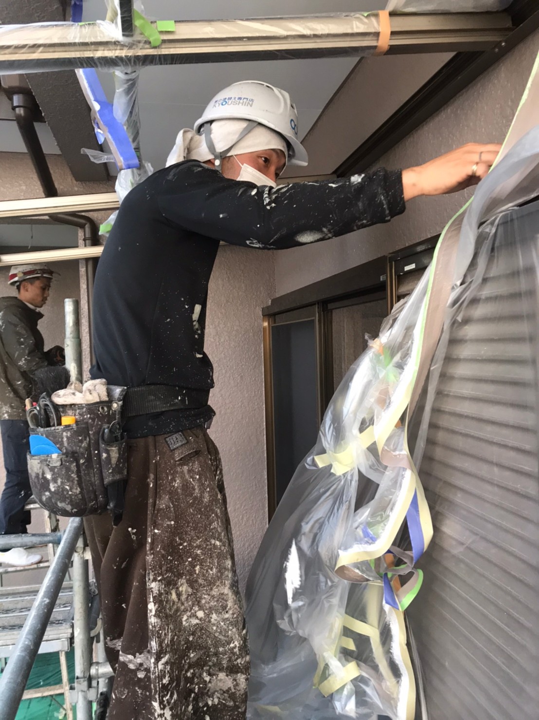同じく養生バラシをしているこちらの方は、、、