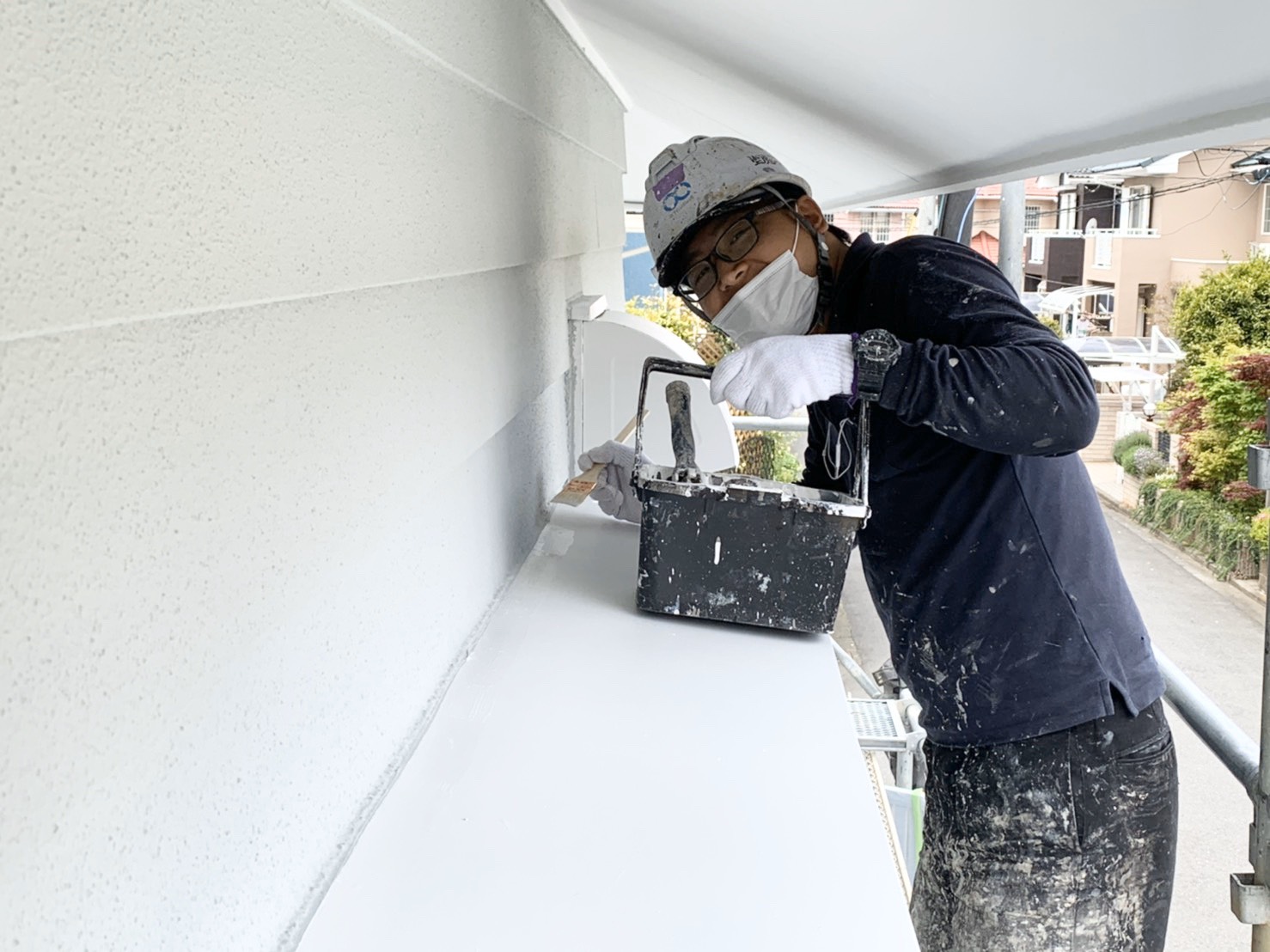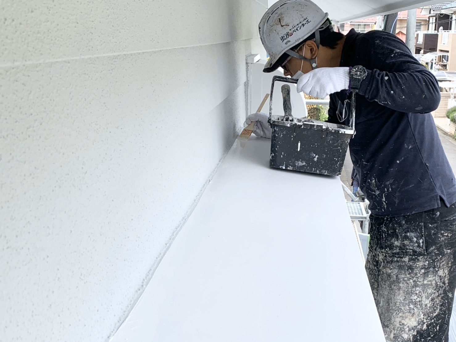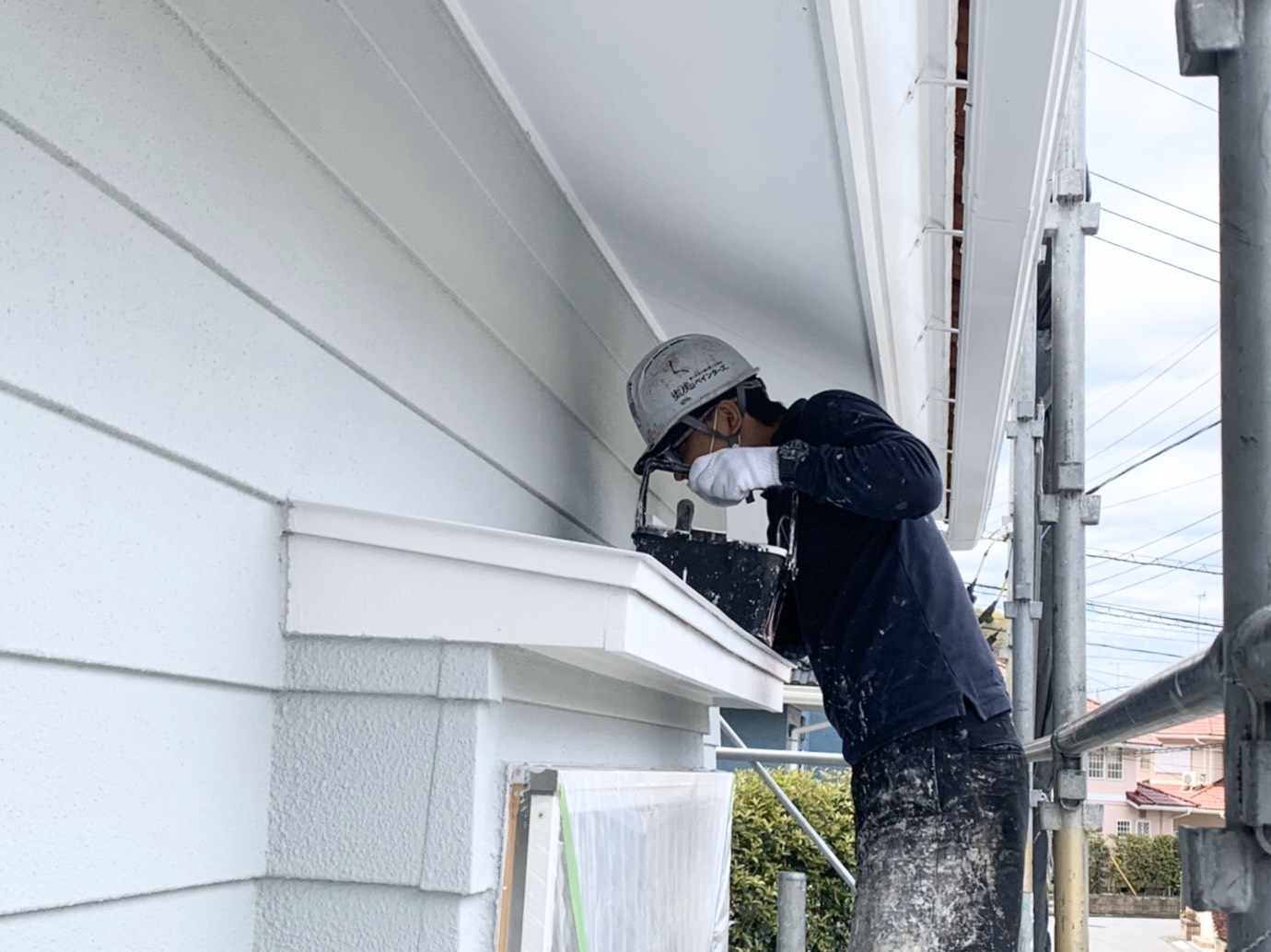 若松班がひさしを塗装していました!!