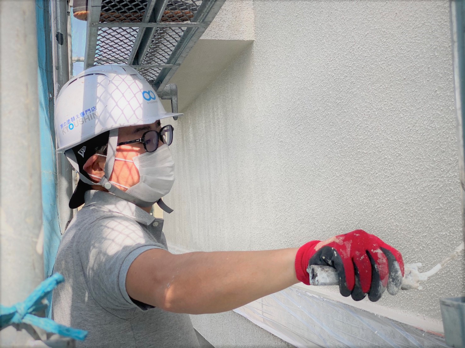 この日は、外壁上塗り作業をしていた松本さん