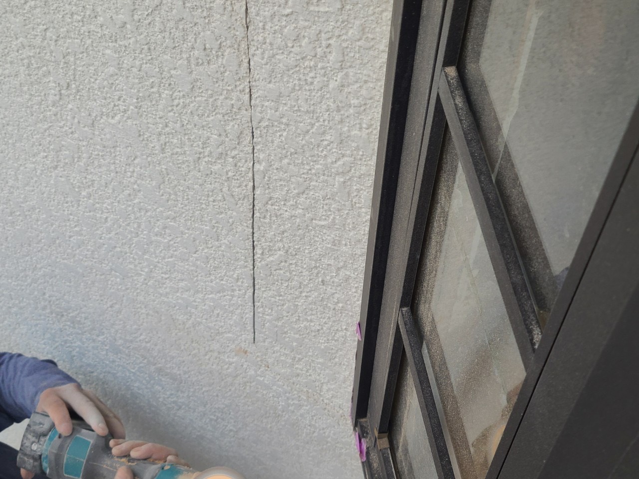 この作業は窓廻りの枠にテープを貼り塗装の線だしをしている作業になります!!
