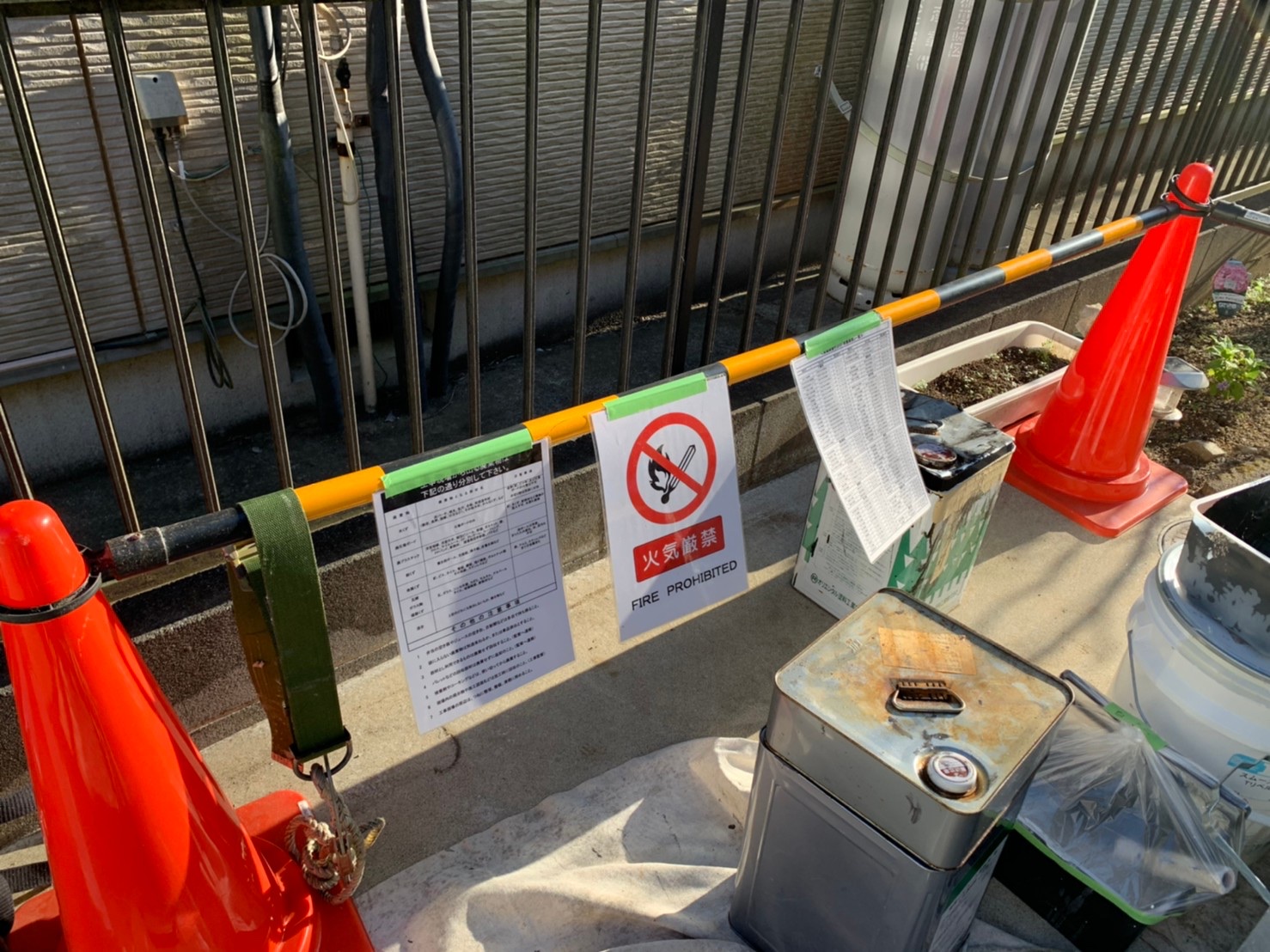 そして注意喚起も張っていて材料置き場の安全もバッチリです