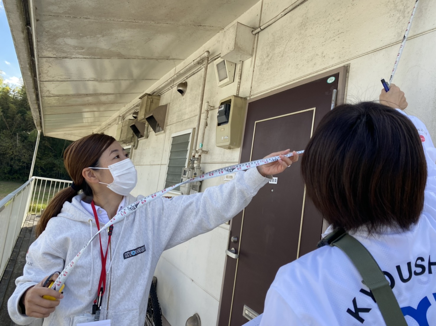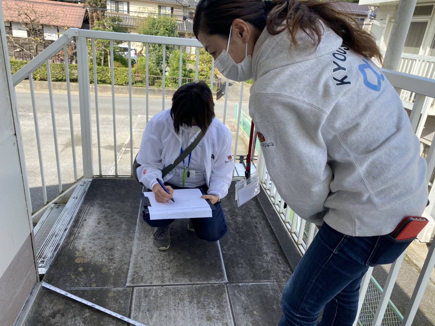 こちらは牟田さんが測り、堀さんが記録中!