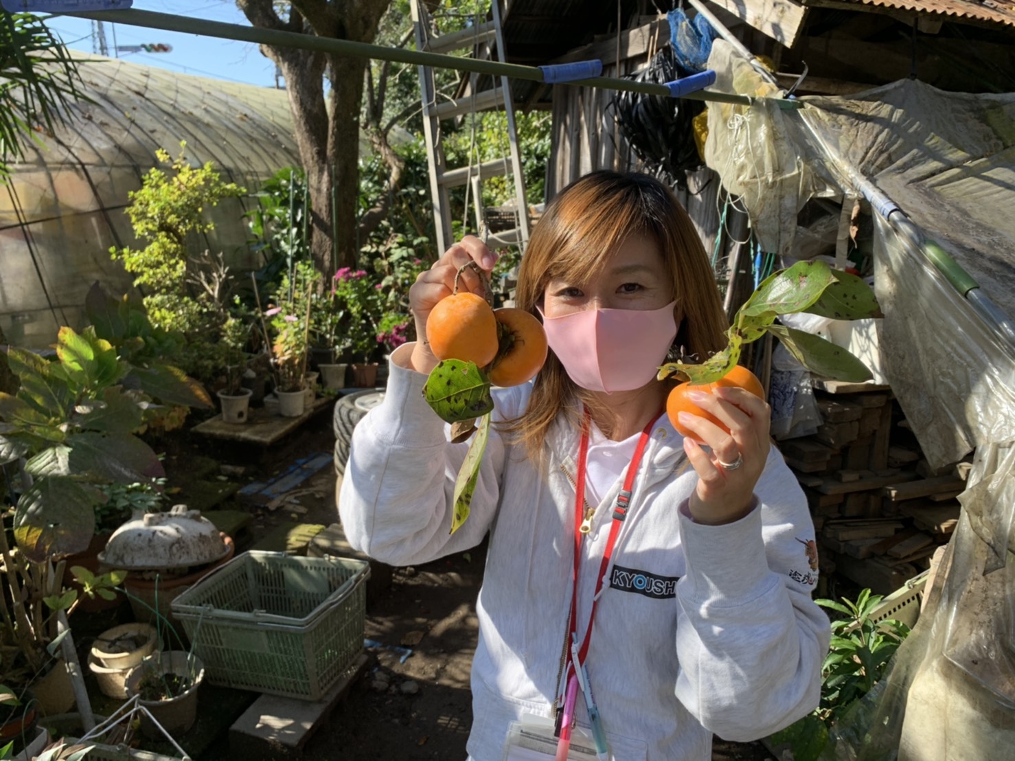 柿と一緒にハイポーズ!!