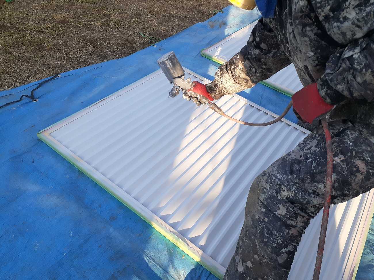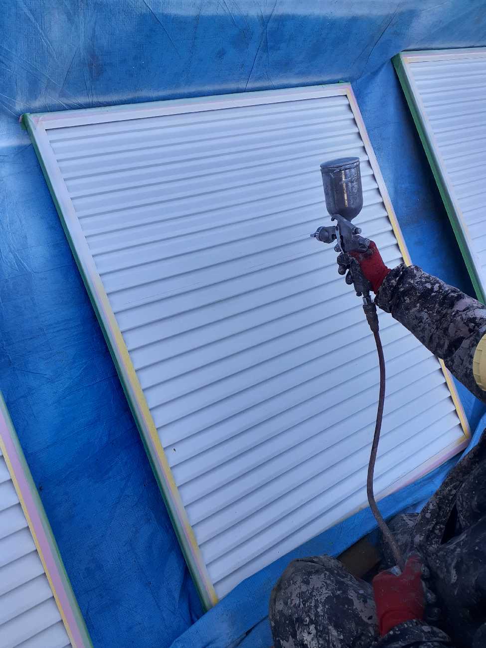 この雨戸を塗装していくのですが、手塗りではなく 吹き付け塗装でおこなっています!!