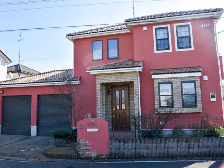 暖かみのあるオレンジ系の外壁と玄関部のタイルがオシャレなお家です!