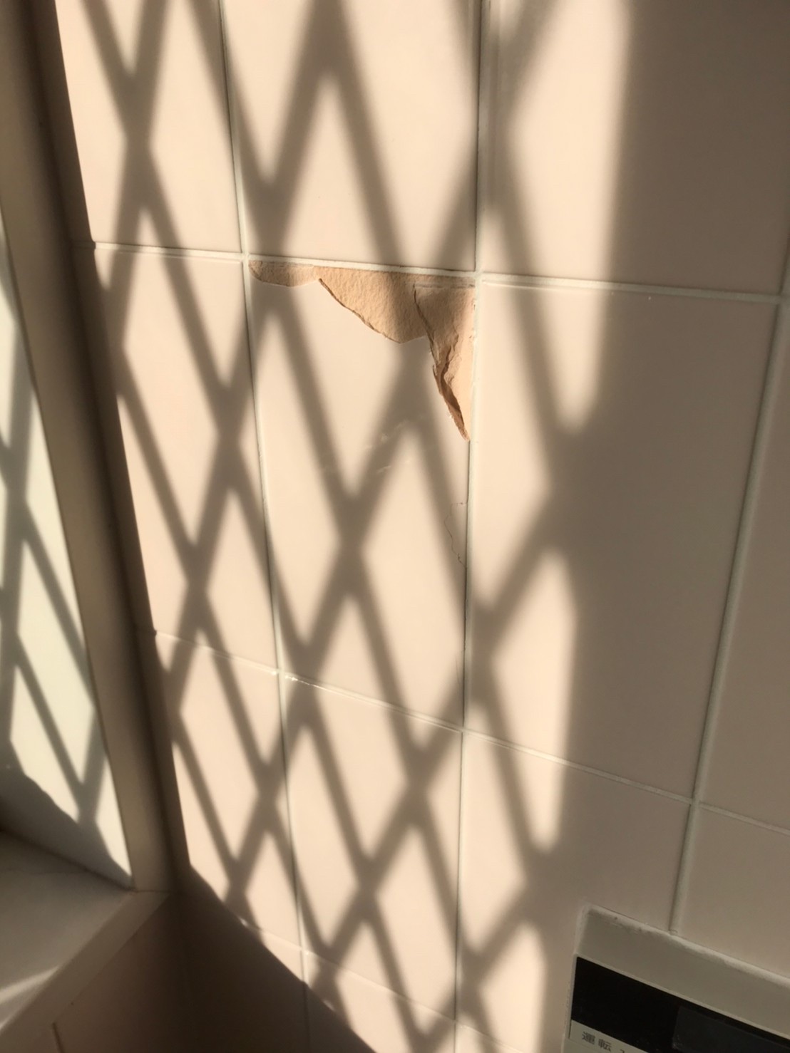 タイルも劣化で小さいヒビが入ってしまい、劣化で掛けてしまう事があります