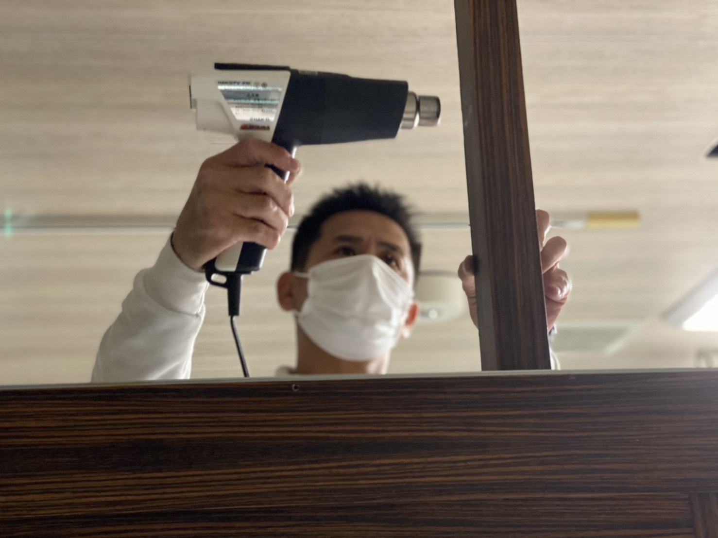 ホットガンで乾燥中でした!