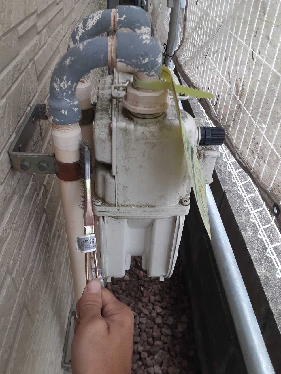 ガス管の削り作業もワイヤーブラシを使って細かい部分も削っていきます!