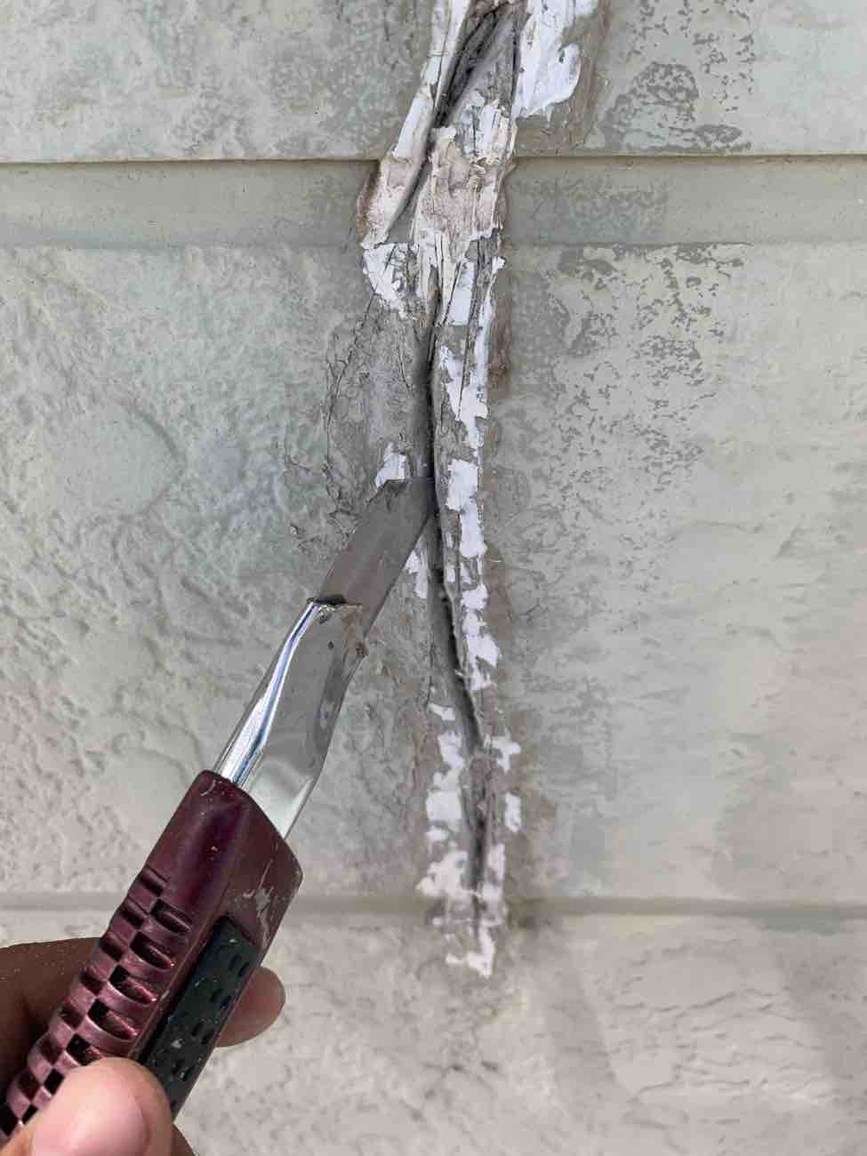 古い補修材料を取り、専用のパテを詰め補修をして外壁の補修作業は完了になります!