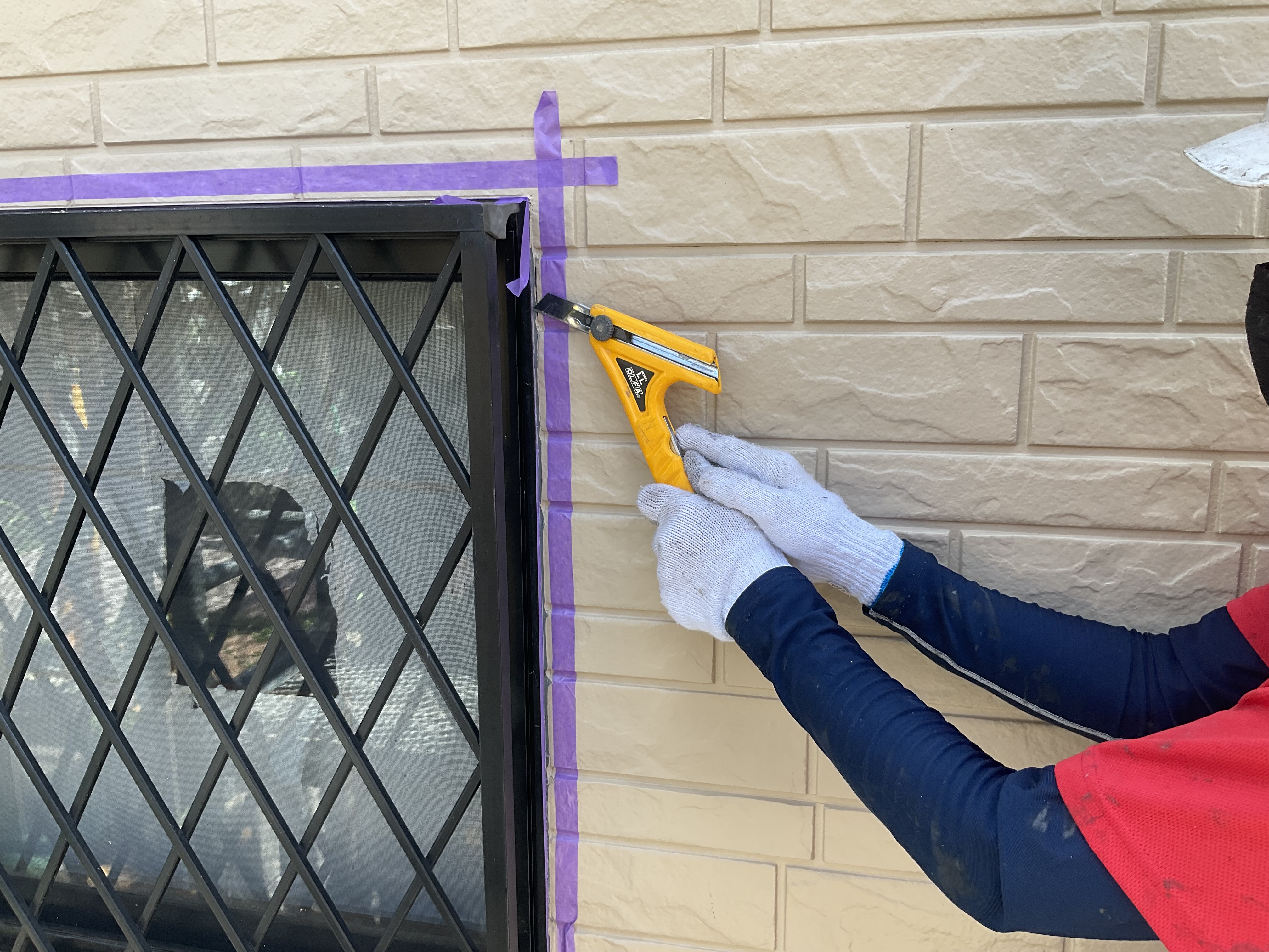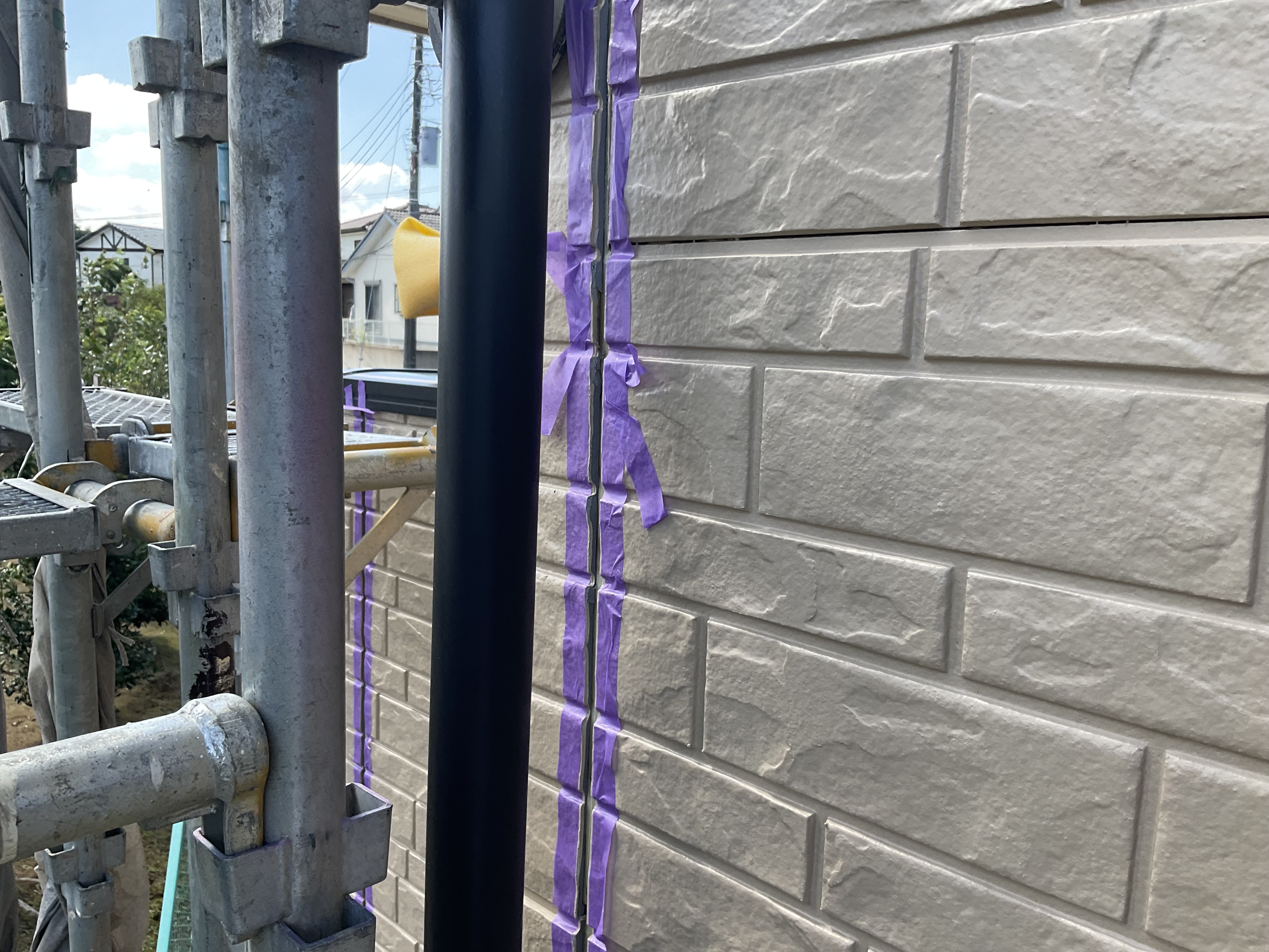 撤去が終わったら、シーリングの打ち替え箇所にマスキングテープを貼ってシーリングを打ち込み