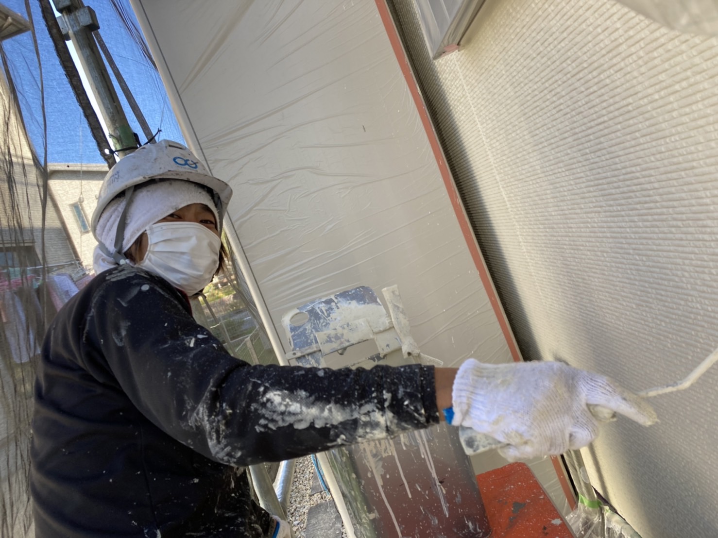 外壁の上塗り塗装中でした!![]()