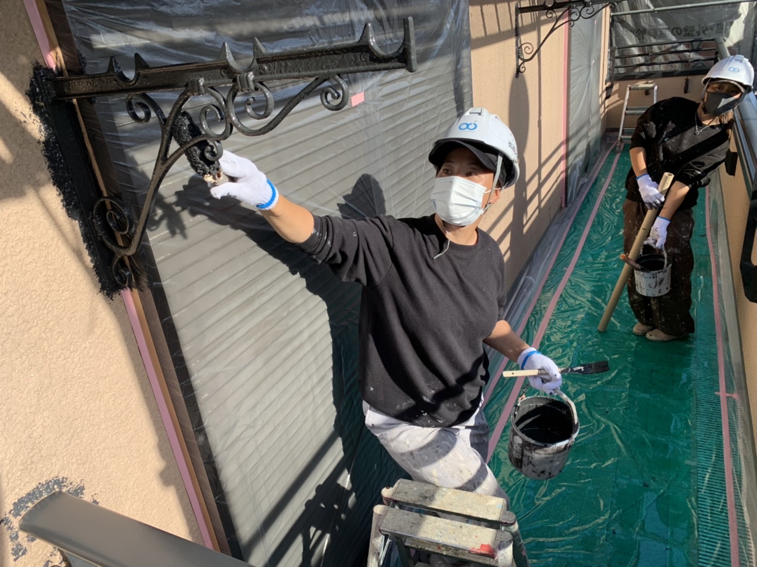 この日は、付帯塗装の物干しの塗装を行っていた所を撮らせて
