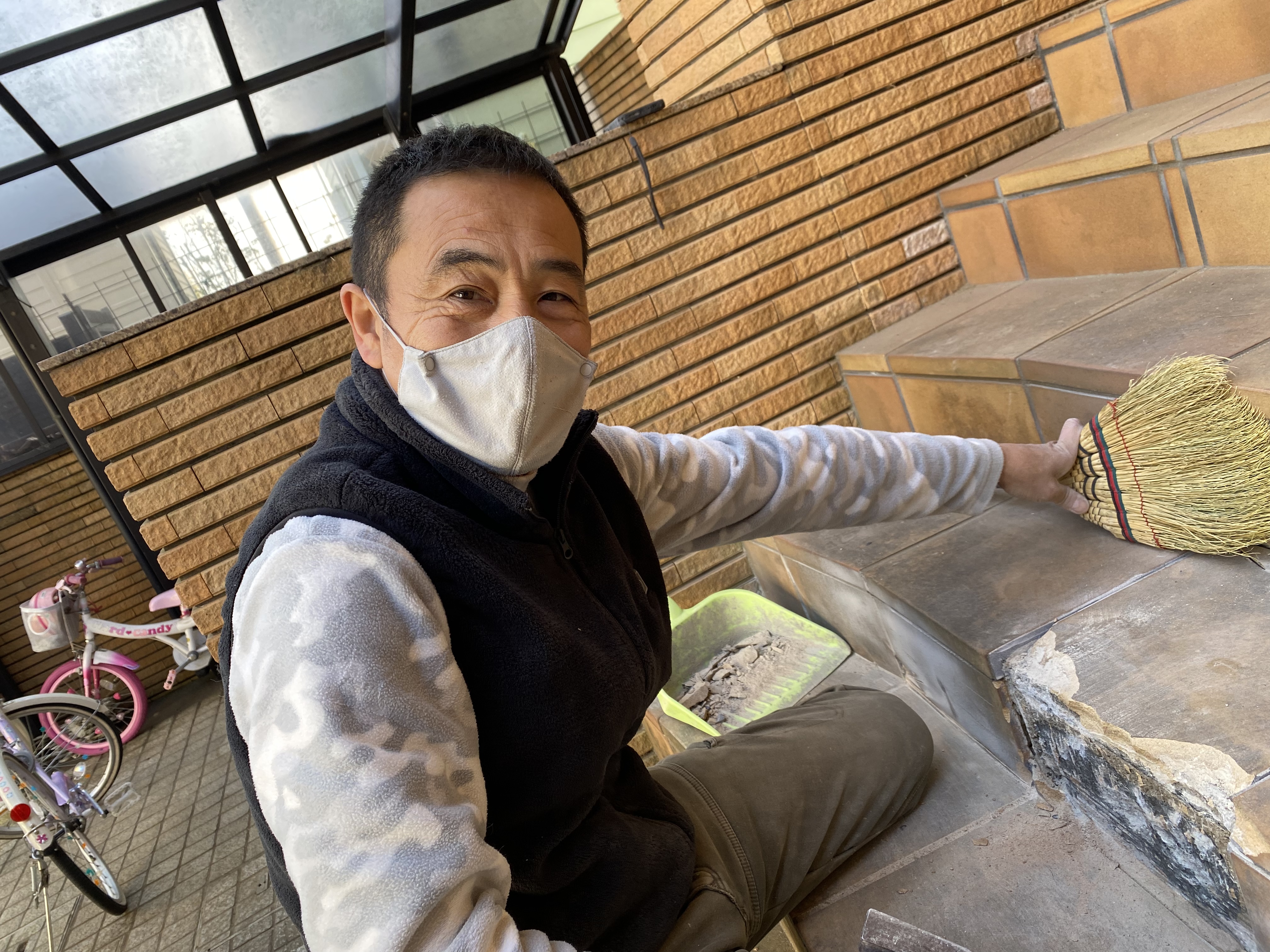 タイルにヒビが入ってしまい、貼り替え工事を行なっています!!