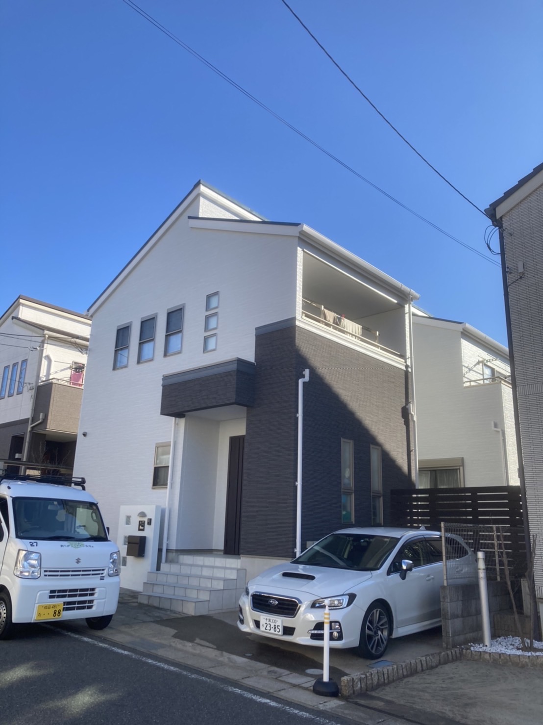 綺麗な白色でアクセントの黒が映えるお家になりました!