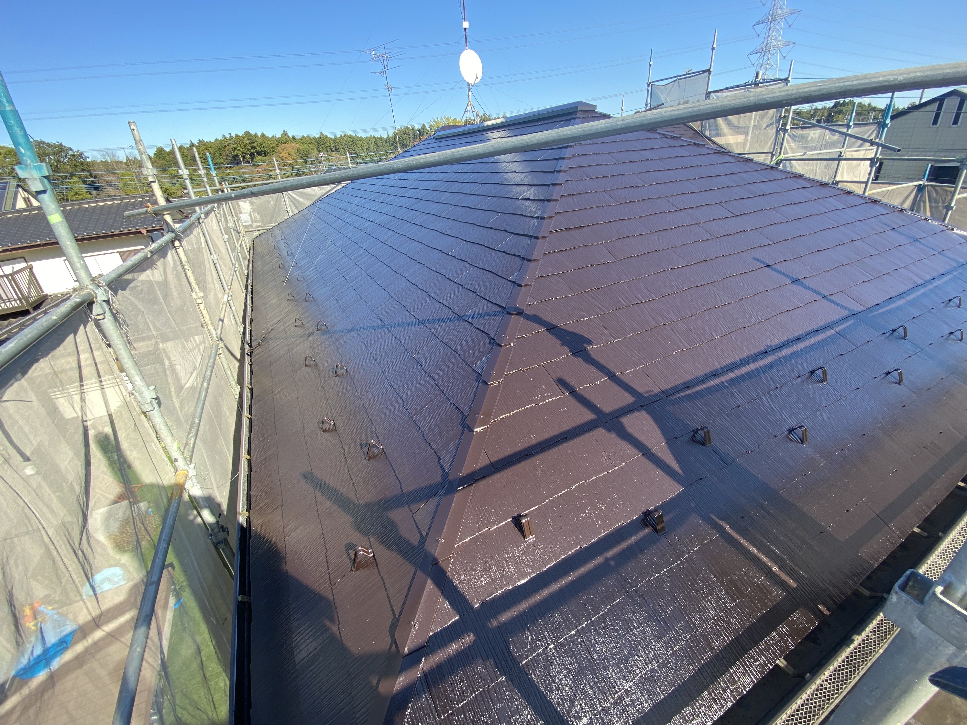 屋根はツヤありでピカピカに、破風板など付帯もキレイになりました(^^)/