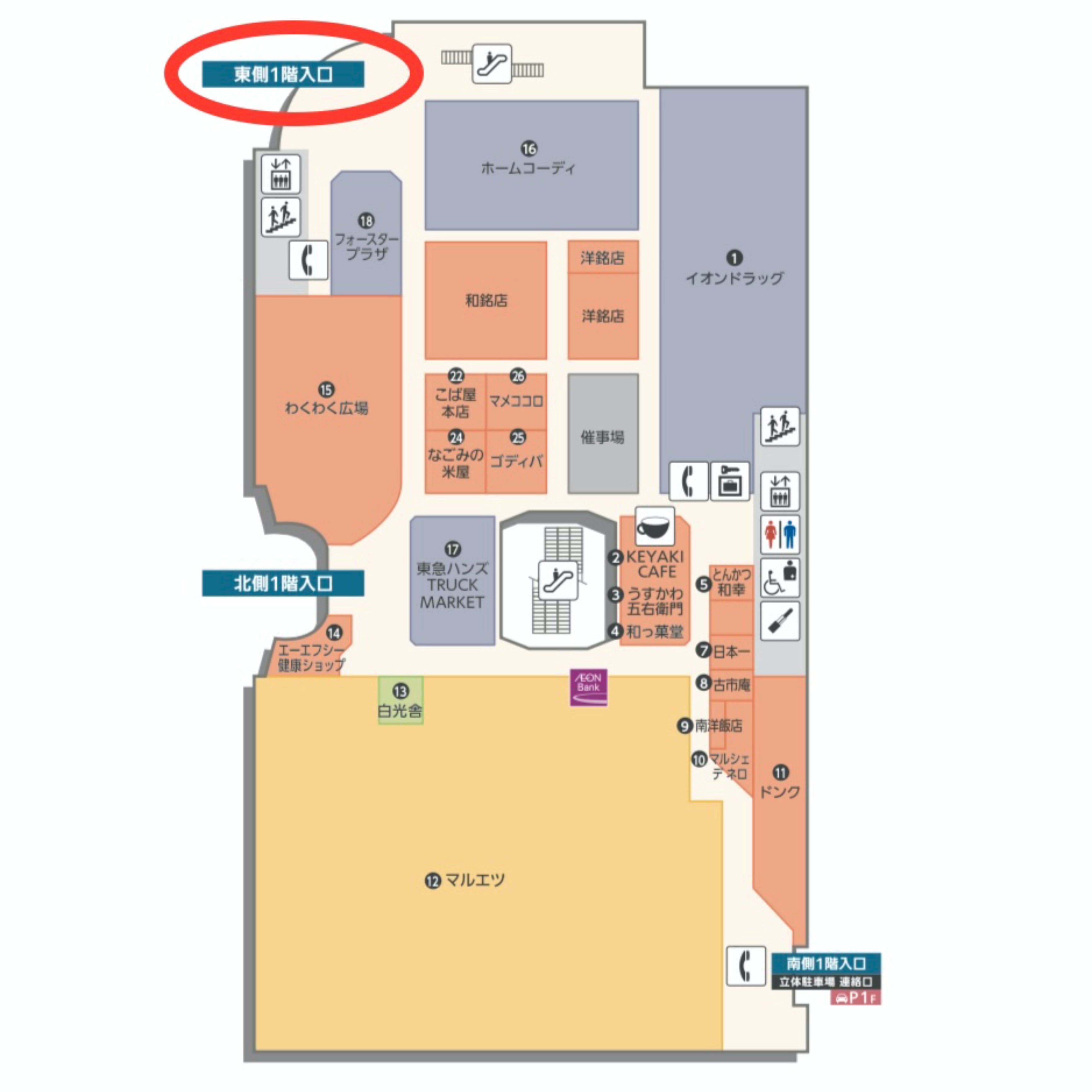 場所:1階東口(マルエツ入口)