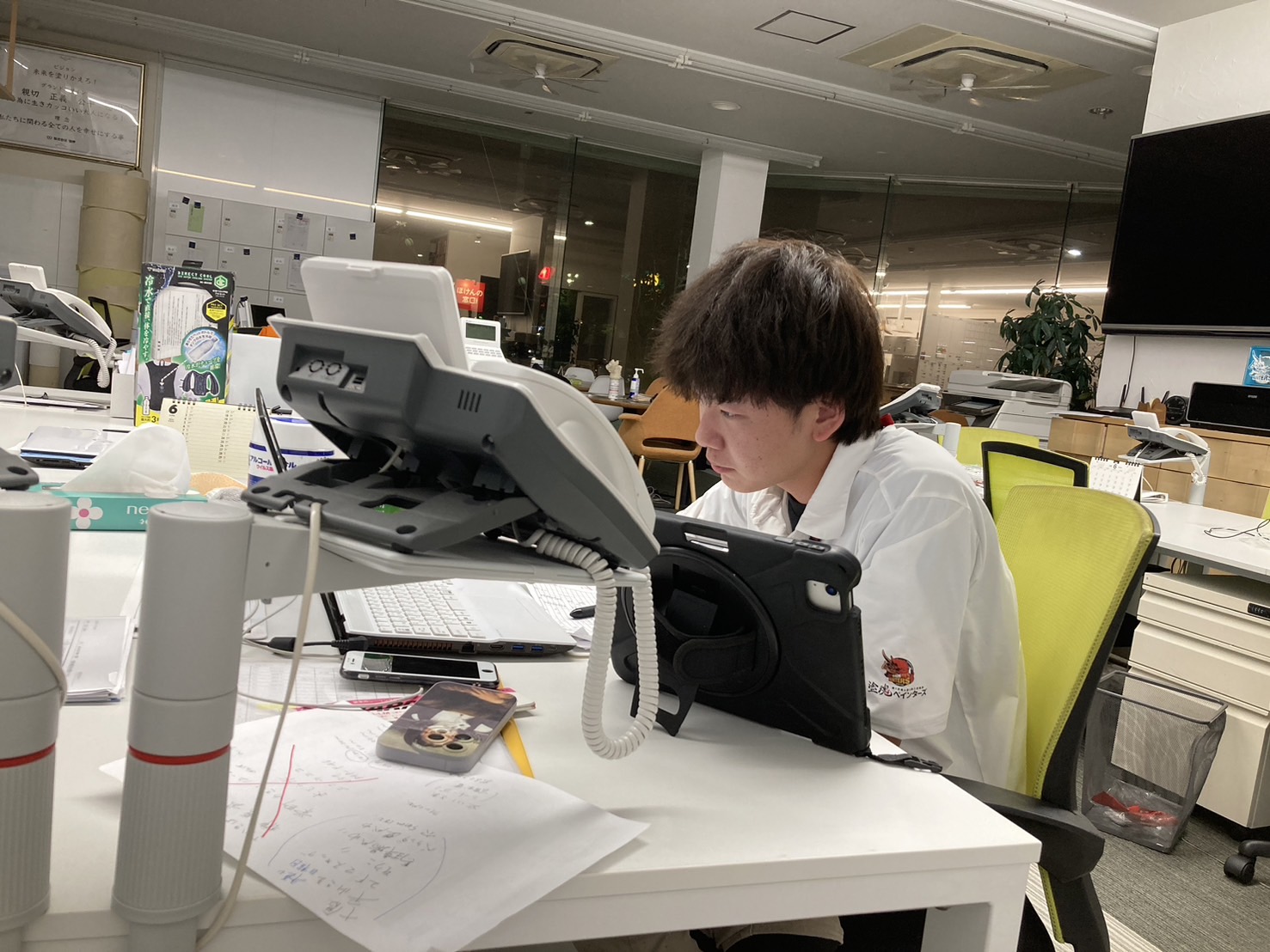 荻島さんが事務所で確認や作業を行っていました。