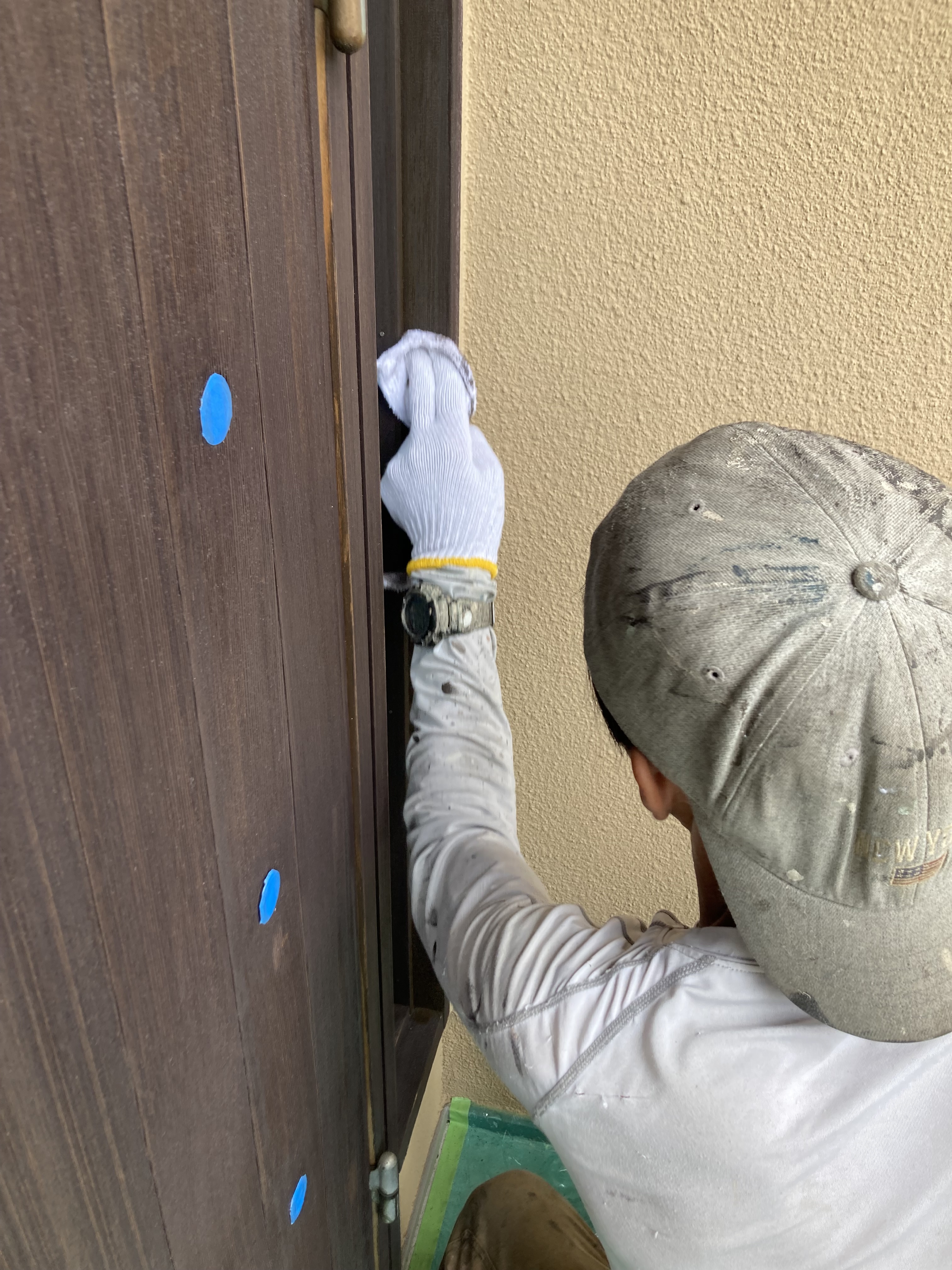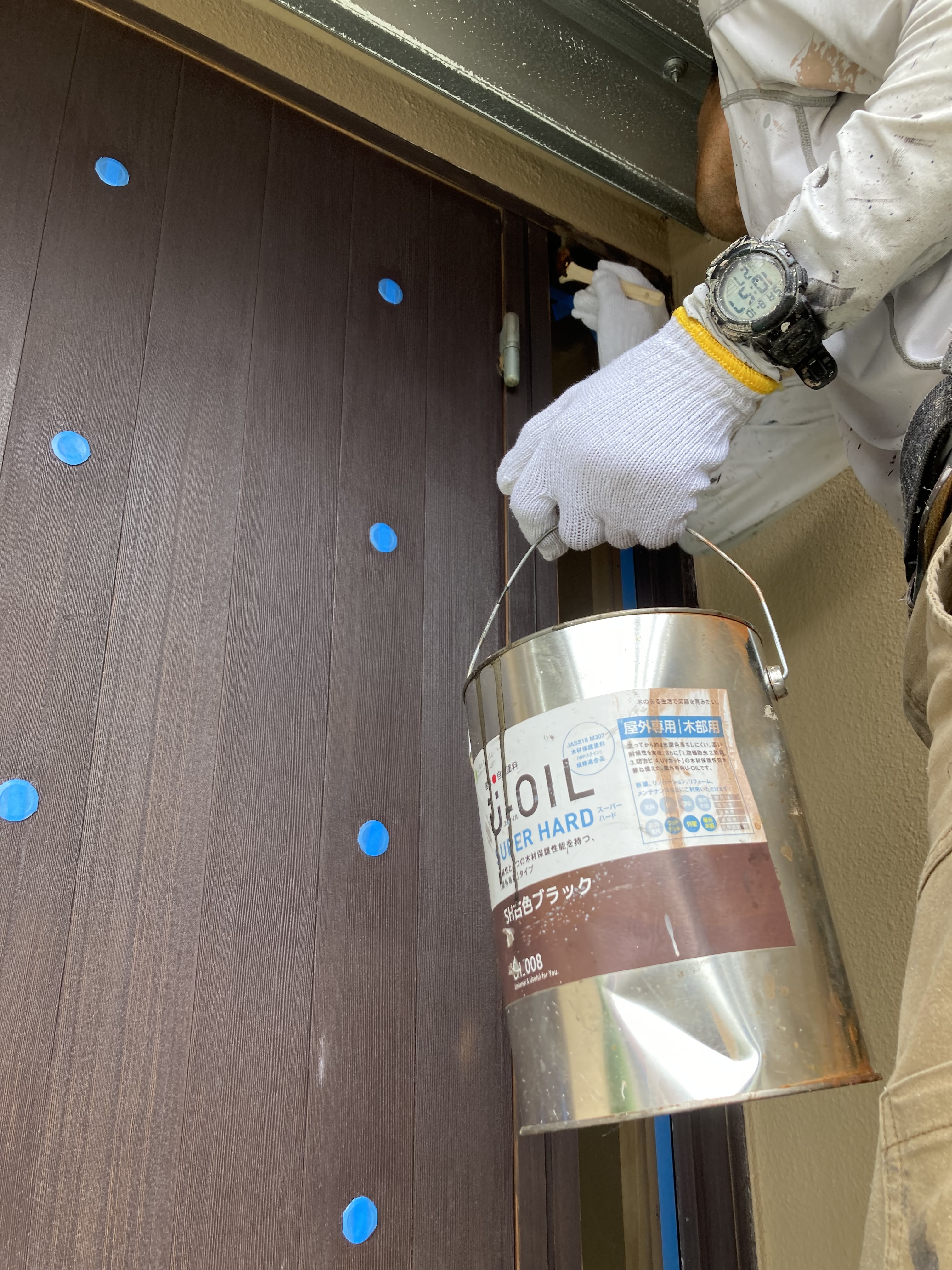本日は玄関扉を塗装している大黒さんになります❗️